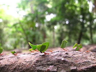 I spent most of my time on the west coast, in Costa Rica’s smallest national park. One morning, after a walk along the beach, I took the undulating path back through the rainforest to the road, a 15-minute stroll. As I gazed up at the trees listening to the alarming sounds of the howler monkeys, and hoping to see one, something on a tree branch caught my attention. In Costa Rica there is an interesting family of ants called the leaf cutter ants. And there they were, hundreds of large ants carrying even larger pieces of cut leaves, in a frenzied parade along the tree branches. I stopped to follow their path with my eyes, as they descended almost military-like, marching straight down the huge tree trunks and along the ground. I had not seen or heard about leaf cutter ants before, so I was quite intrigued. I started to follow them for several minutes. Eventually, they started to disappear into a hole in the ground, their home, where the leaves are chewed but not eaten, and stored for food.